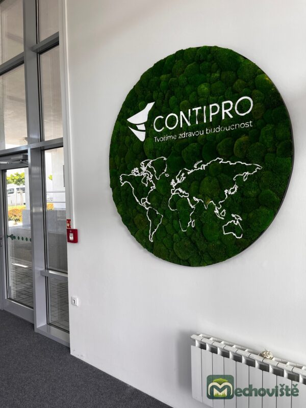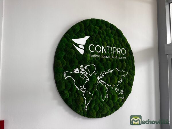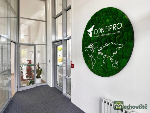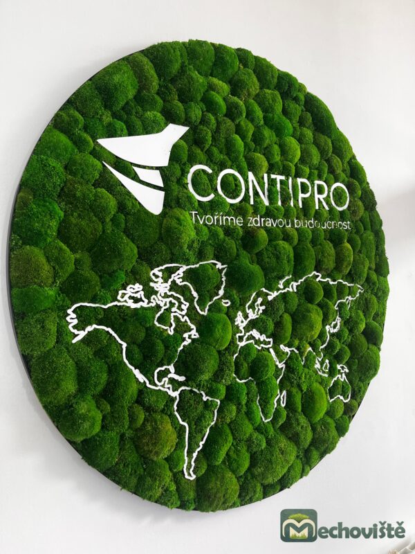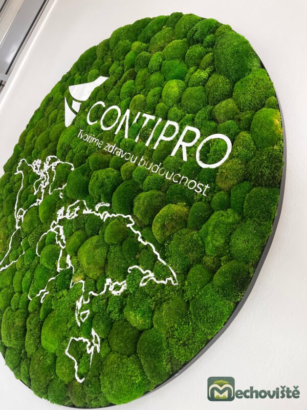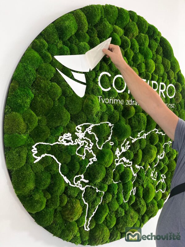 Každý kus je originál – mech si zachovává svůj sytě zelený odstín a hebkou strukturu po mnoho let, a to bez nutnosti jakékoli údržby. Plexisklové logo na jeho povrchu vyrábíme na míru v jakékoli velikosti, aby dokonale odpovídalo vaší značce či interiéru.